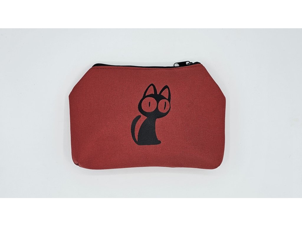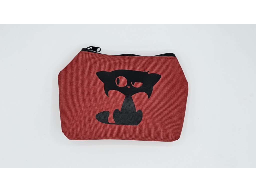Taštička je ušitá na průmyslovém stroji. Obrázek na klopě je vyřezán na plotteru.
