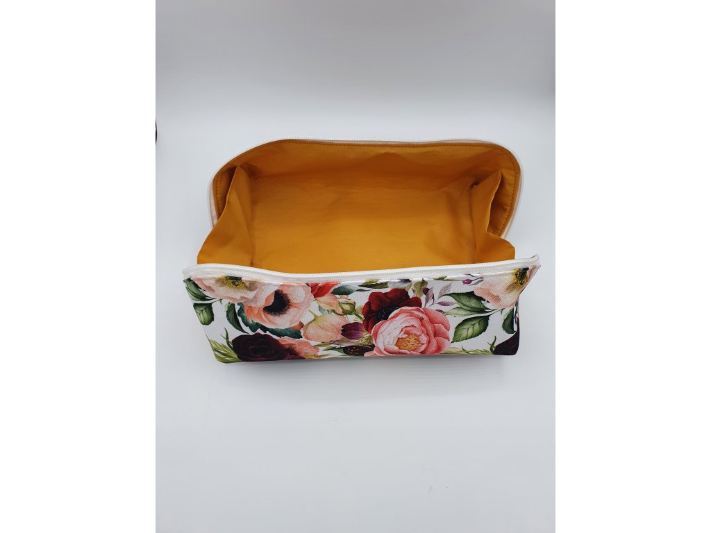 Celá taštička je ušitá z kočárkoviny. Pokud budete chtít jinou barvu podšívky, nebo zipu, stačí mi napsat do poznámky při objednávce, jak si svou kosmetickou taštičku představujete!